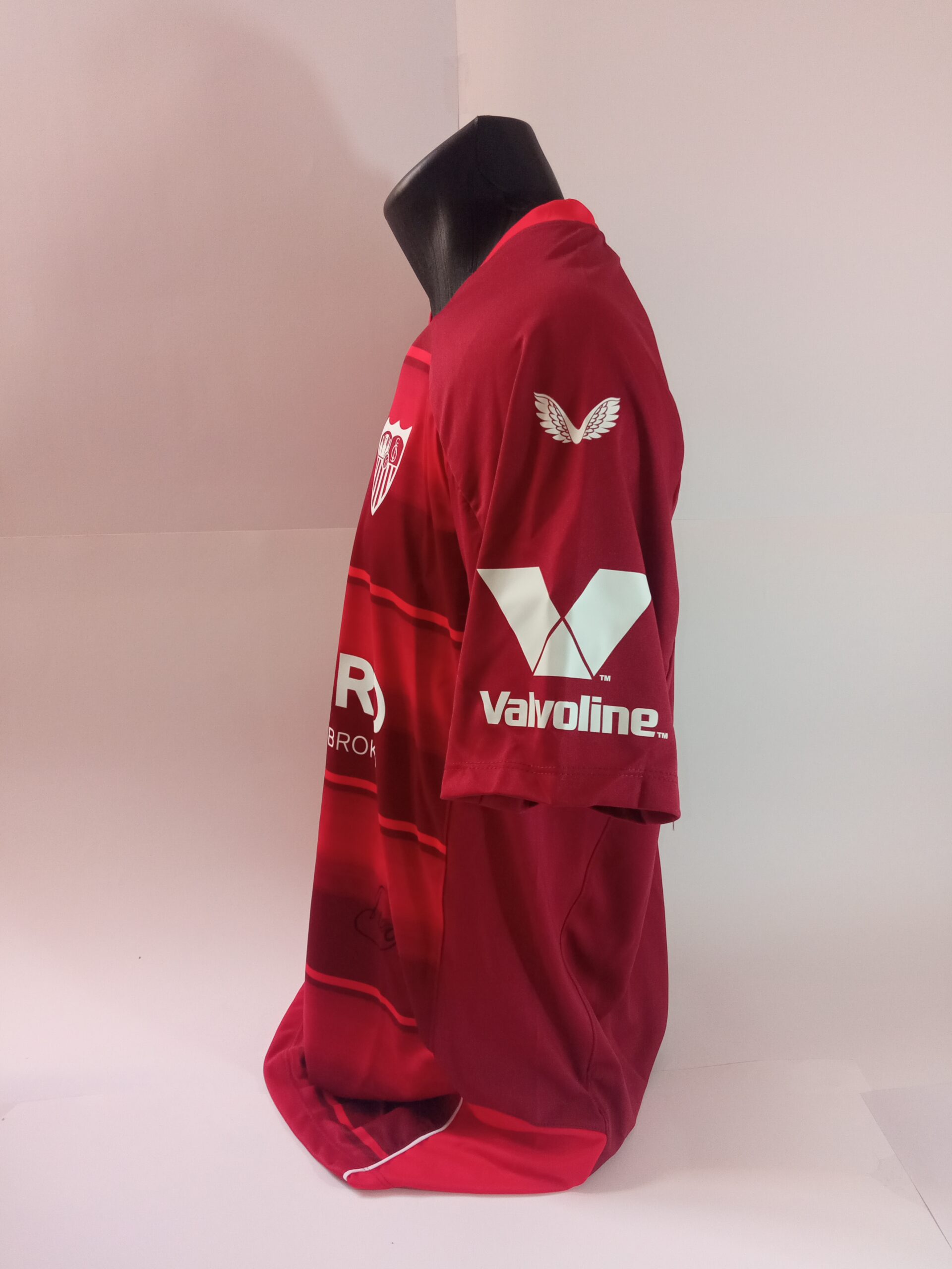 CAMISETA oficial autografiada por tres jugadores de la plantilla del Sevilla FC (segunda equipación) temporada 2022/23 (Autografiada por Sergio Ramos #4, Ivan Raquitic #10 y Jesús Navas #16)